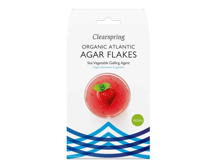 Clearsprings veganske geleringsmiddel er lavet af økologisk agar tang fra Atlanterhavet. Agar flager er et godt alternativ til husblas, er super nemt at bruge og har ingen smag. Brug 1 teske agar flager til at stivne ca. 250 ml. væske.