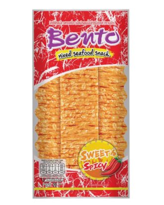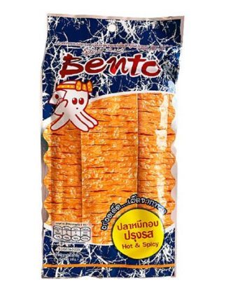 Bento er en populær thailandsk snack, der har den hemmelige opskrift på sin unikke krydrede smag og munchy tekstur. Dens sprøde strejf af original blæksprutte, en urtelsmag og thailandske chilipasta har gjort en unik oplevelse med spidsen af ​​krydret efterfølgelse med en sød smag.