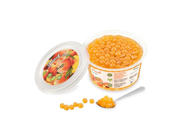 Vand, fruktose, fersken juice (14.5%), stivelse, Surhedsregulerende middel: calcium lactate (E327); Syremidler: Citronsyre(E330), fortykningsmiddel: Sodium alginate (Tang ekstrakt), fersken smag, Xanthangummi; farvetilsætningsstof: (E160a), Askorbinsyre, sødemiddel: Sukralose, Konserveringsmiddel: (E202).Næringsdeklaration: