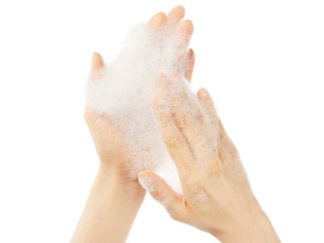 1. Påfør en passende mængde med rene hænder på vådt ansigt og hals