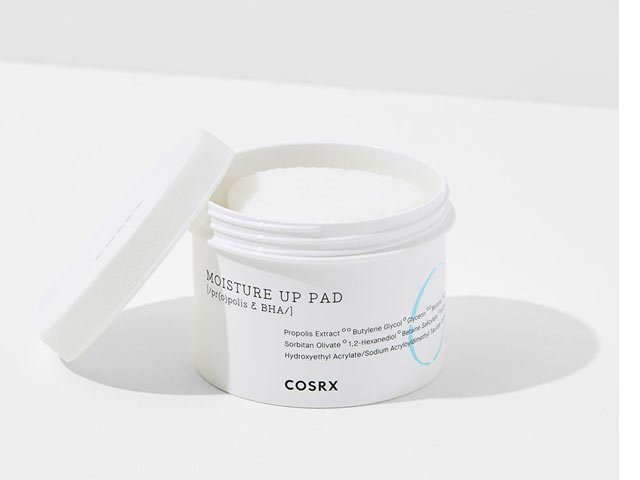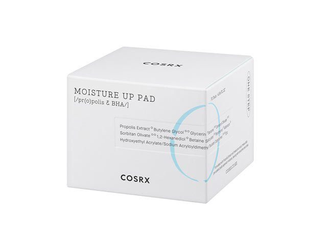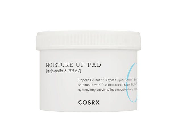 Formuleret med hyaluronsyre, Propolis og naturlig BHA. COSRX One Step Moisture Up Pad 70 Pads er formuleret med hyaluronsyre, Propolis og naturlig BHA for at eksfoliere, beskytte og øge hudens absorberende potentiale. For maksimal hydrering, der varer hele dagen. Perfekt til følsom, let irriteret hud.