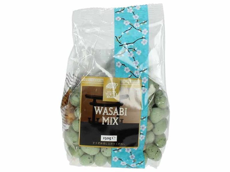 JORDNØDDER 28%, HVEDEmel, majsstivelse, sukker, rørsukker, majsmel, palmeolie, krydderier (sukker, salt, HVEDE , SOJA , dextrin, aroma (indeholder SENNEP ), palmeolie, wasabi pulver (Wasabia japonica) 0,095%, smagsforstærker: E635, dextrin antioxidant: E392, emulgator E414, surhedsregulerende: E330, farve: E150c, hævemidler: E500, SOJAsauce ( HVEDE , SOJA , salt, vand), kartoffelstivelse, krydderier (aroma (indeholder SENNEP), palmeolie, coatingmidler: E414, dextrin , Antioxidant: E392), Løg, Syre: E330, Kelp, Dextrin, Krydderier (Ingefær, SELLERI, Paprika, rapsolie, SOJAolie, ristet hvidløgsolie, smagsforstærker: E635, SELLERI , hvidløg, farvestof: E141, farvestof: E160c, wasabi (wasabia japonica) 0,012%.