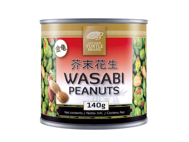 JORDNØDDER 67%, modificeret stivelse, HVEDEMEL, sukker, dextrin, salt, kokosolie, Wasabi japonica pulver 0,28%, farve: E141.