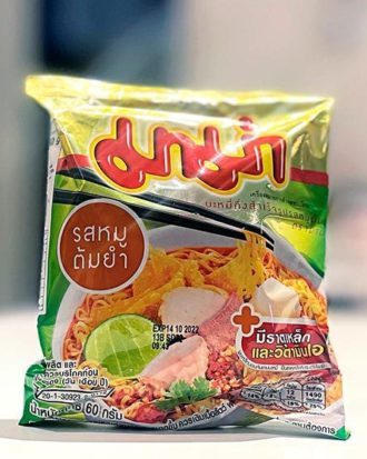 Nudlerne: HVEDEMEL, raffineret palmeolie, salt, krydderier: Salt, sukker, kunstig oksearoma, hvidløgspulver, gærekstrakt, kokossmag, peber, grillsmag, kryddernellike, stjerneanis. Krydderolie: raffineret palmeolie, løg, chili, STEARINLYS-NØD, hvidløg, ingefær, galangal,gurkemejeblade, citrongræs, limeblade, gurkemeje, laurbærblade samt karrysmag.Næringsdeklaration: