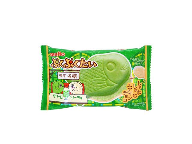 Meito Puku Puku Tai Air-In Cream Soda er en lækker taiyaki formet vaffel kiks med en cremet sodavandssmag! Denne chokolade er lavet til at ligne flødesoda. Farven på kiksen er forskellig på forsiden og bagsiden!