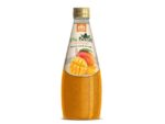 Vand, mango juice, Basilikumfrø, Sukker, Syrecitron, Fortykkelsesmiddel: Gellangum, Xanthangummi, granatæble aroma, kunstig farve E110*, E150, Kaliumsorbat E202. *Kan have negativ indvirkning på børns aktivitet og koncentrationsevne