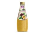 Vand, passionsjuice, Basilikumfrø, Sukker, Syrecitron, Fortykkelsesmiddel: Gellangum, Xanthangummi, granatæble aroma, kunstig farve E110*, E150A, Kaliumsorbat E202. *Kan have negativ indvirkning på børns aktivitet og koncentrationsevne