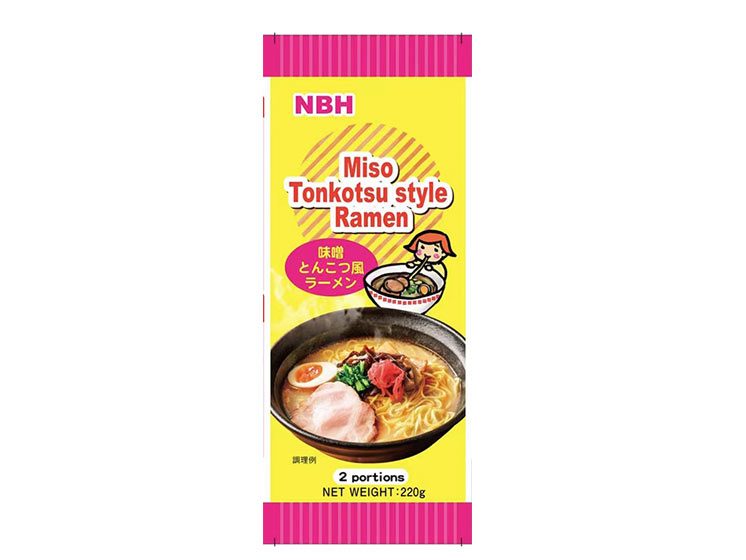 Nudler: HVEDEmel 98%, salt, surhedsregulerende middel E500i, E501i, E500ii, farve E160a; Suppe: hydrogeneret glukosesirup, SOJAbønnepasta, salt, SOJAsovs; pulveriseret pose: palmeolie, SOJAbønneolie, fortykningsmiddel E1422, sukker, alkohol, stegt hvidløgspulver, forarbejdet hvidløg, hydrolyseret protein, smagsstof, smagsforstærker E621, E635, modificeret stivelse E1450, farve E150a, gærekstrakt, sort peber.