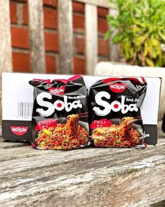 Ingredienser: Nudler 70,7% (HVEDEMEL, palmeolie, salt, smagsforstærker E621, melbehandlingmiddel (E500, E451), antioxidant E306, surhedsregulerende middel: citronsyre, krydderisauce 21,7%, (sukker, vand, dextrose/druesukker, rapsolie, salt, smagsforstærker (E621, E635, eddike, SOJASAUCE (vand, SOJABØNNER, salt, HVEDE), melasse, farve/farvestof E150c, krydderier, hydrolyseret vegetabilsk protein, tomatpulver, surhedsregulerende middel: citronsyre), chilli (0,5% i kryddersauce), aroma), kål, rød peberfrugt/paprika. Kan indeholde spor af selleri, krebsdyr, fisk, mælk, bløddyr, sennep og sesam.
