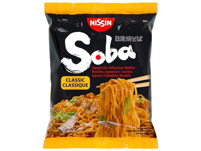 NISSIN SOBA er en uimodståelige lækker nudel med yakisoba sauce og grøntsager.