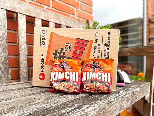 Ingredienser: Nudler: hvedemel, palmeolie, kartoffelstivelse, salt, surhedsregulerende: E339, E500, E501, krydderier (gærekstrakt, sojasauce, hvidløg, HVEDEstivelse), Tocopherol flydende (antioxidant: E306, emulgator : E322 (indeholder SOJA)), ekstrakt af grøn te (oligosaccharider, te-catechin, syrner: E330), farvelægning: E101; Suppepulver: Krydderier (maltodextrin, hydrolyseret planteprotein ( SOJA, majs, HVEDE), salt, ANSJOS, gærekstrakt, sennepolie), salt, sukker, krydderier (maltodextrin, glukose, rød peber, sort peber, hvidløg), syrner: E330, smag Forstærker: E627, E631, karamelpulver (maltodextrin, farve: E150c); Vegetabilske flager: Tørrede grøntsager (kimchi flager, bokchoy, gulerod, løg). Allergi: