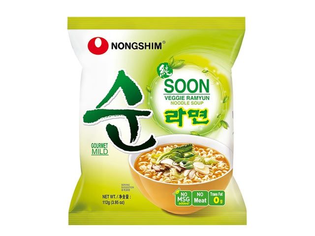 Nudler: HVEDEMEL, palmeolie, kartoffelstivelse, modificeret kartoffelstivelse, salt, surhedsregulator: E501, E339, E500, krydderier (gærekstrakt, SOJAsauce, hvidløg), tocopherolvæske (antioxidant: E306, emulgator: SOJA-lecithin ), ekstrakt af grøn te (oligosaccharider, grøn teekstrakt, syre: E330), farve: E101. Suppepulver: krydderier (hydrolyseret vegetabilsk protein (SOJA), maltodextrin, gærekstrakt, salt, SOJA-sauce, SOJAbønne, sukker, HVEDEmel), krydderier (maltodextrin, hvidløg, rød peber, salt, sort peber, ingefær, løg, grøn løg) ), salt, sukker, smagsforstærker: E631, E627, maltodextrin, shiitake-svamp, syre: E330. vegetabilske flager: tørret choy sum, tørret gulerod.Næringsdeklaration: