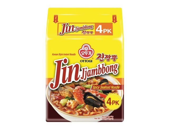 nudler: HVEDEmel (HVEDE: Australien), kartoffelstivelse (importeret: danmark, frankrig, tyskland), modificeret stivelse, palmeolie (malyasia), HVEDEgluten, salt, gærekstrakt, emulgeret olie (SOJAolie, d-sorbitol, SOJAbønne lecithin, glycerinestere af fedtsyrer), surhedsregulator (kaliumcarbonat, natriumpolyphosphat), calcium (ÆGgeskal), guargummi, natriumalginat, cellulosegummi, riboflavin, grøn te-aromatiseret oliesuppe: vand, jjambbong-krydderipasta (BLÆKSPRUTTE, REJER, paprika, hvidløg, salt), krydderisauce med FISK og SKALDYR (BLÆKSPRUTTE, MUSLING, TORSK, KRABBE, salt), MUSLINGekoncentratpulver, BLÆKSPRUTTEkoncentrat, kyllingekstrakt, MUSLINGekstrakt, oksekødsekstrakt, vort havsprøjteekstrakt, jjambbong krydderolie, BLÆKSPRUTTEekstraktpulver, hvidløg, løg, kelpekstraktpulver, hydrolyseret vegetabilsk protein (SOJA, HVEDE, majs), rød peberpulver, krydderipulver med FISK og SKALDYR (BLÆKSPRUTTE, REJER, salt), rød peberekstraheret olie, vegetabilsk olie, sukker, smagsforstærker , svinekødsfedt, dextrin, chiliekstrakt, næringsstof, dehydreret kinakål, dehydreret kål, dehydreret BLÆKSPRUTTE, dehydreret gulerod, dehydreret KRABBEkød, dehydreret grøn løg, dehydreret tang, dehydreret jødeør [indeholder HVEDE, SOJAbønne, MÆLK, ÆG, oksekød, svinekød, kylling, BLÆKSPRUTTE, REJER, KRABBER, MUSLING (ØSTERS, MUSLING)] – dette produktet produceres i produktionsfaciliteter, der producerer produkter, der indeholder svinekød, boghvede, blæksprutte, rejer, krabber, makrel, jordnødder, skaldyr (inklusive østers og muslinger).Næringsdeklaration: