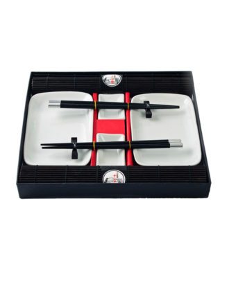 Disse 9 dele består af japanske ris, Nori tang, riseddike, wasabi, ingefær, ristede sesamfrø, sojasauce, en luksuriøs sushimåtte og et sæt spisepinde i træ. Med det sæt af velvalgte, autentiske sushi-ingredienser vil du have muligheden for at være din egen master-chef derhjemme i køkkenet og kunne tilberede et hav af forskellige sushiopskrifter alt afhængigt af hvilken fisk du vælger.