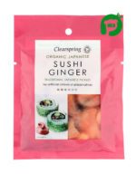 Clearspring økologisk Sushi Ginger er lavet af friske unge ingefær rødder som er skåret meget fint, saltpresset og derefter lagt i en ris edikke lage af en meget høj kvalitet. Farven kommer fra de røde shiso (japanske basilikum blade).