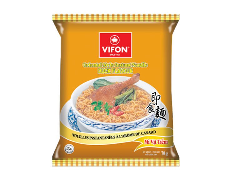 Lækre instant nudler med andesmag fra populære Vifon. Vietnams foretrukne nudelmærke.