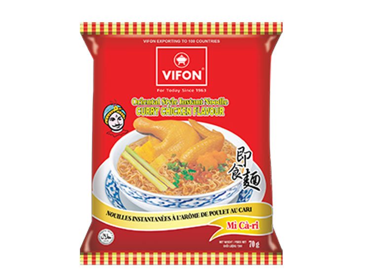 Lækre instant nudler med karry kyllingesmag fra populære Vifon. Vietnams foretrukne nudelmærke.